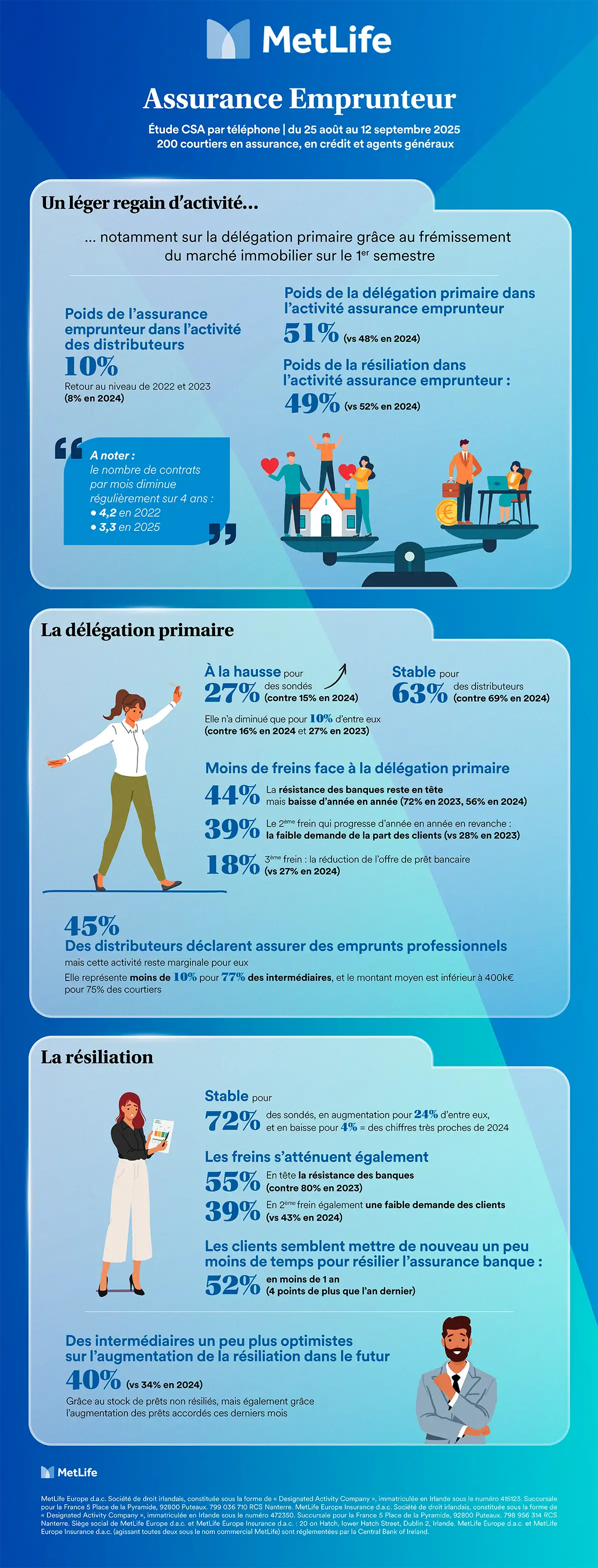 Le marché de l'assurance emprunteur en France montre des signes de stabilisation au premier semestre 2025. Selon le Baromètre CSA réalisé pour MetLife France, l'activité retrouve un niveau proche de celui de 2022 et 2023, grâce à la reprise du marché immobilier. Parallèlement, la résiliation des contrats se maintient à un rythme constant.