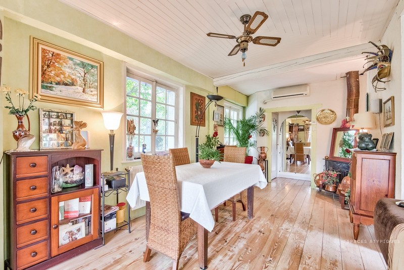 La vue sur le canal est exceptionnellement reposante. A Carrières-sous-Poissy dans les Yvelines, cette maison à vendre sur Espaces-Atypiques bénéficie d'un écrin de verdure de 165m² sur l'île de la Dérivation. Ile uniquement accessible à pieds, en vélo, moto ou quad par une passerelle surplombant l'écluse désaffectée depuis 1977 mais qui porte toujours l'empreinte des bateliers.